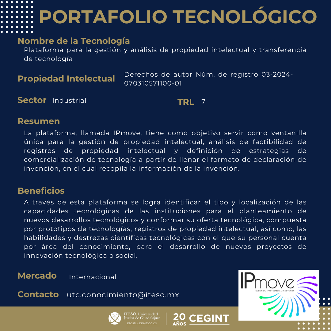 ¡ESCRÍBENOS!La Oficina de Transferencia de Tecnología del ITESO promueve y facilita la generación y protección de la propiedad intelectual y las actividades de transferencia de tecnología. La Unidad de Transferencia del Conocimiento (UTC) es la interfaz para que el sector productivo, gobierno y otras organizaciones puedan acceder y utilizar los resultados de investigación y desarrollos tecnológicos que se generan en el ITESO con el soporte y la experiencia de académicos e investigadores especializados. Para cumplir con sus propósitos, esta unidad trabaja en colaboración con las unidades de servicio del Centro para la Gestión de la Innovación y la Tecnología y con otras instancias de la Universidad.