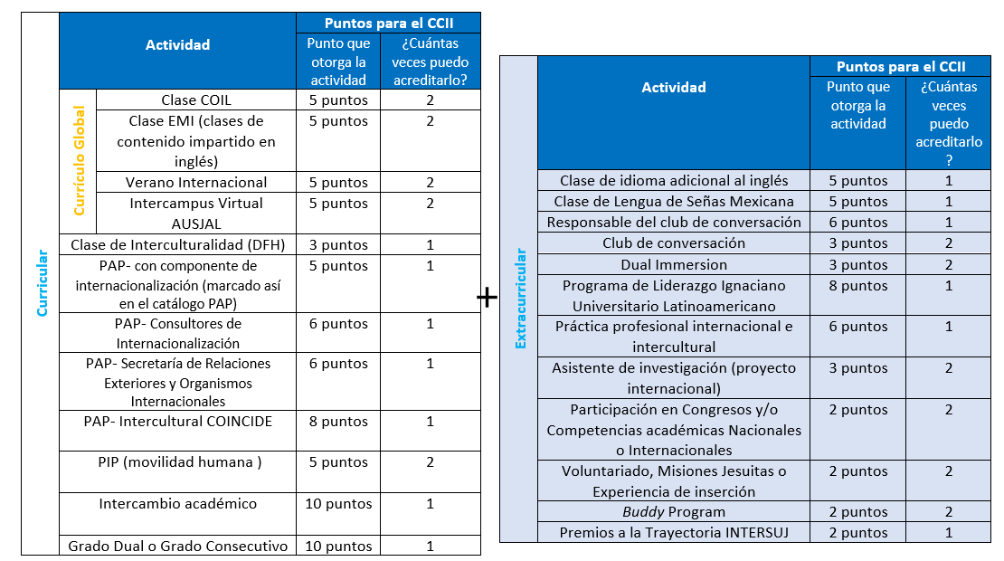 Para obtener el CCII se requiere participar en diversas actividades internacionales e interculturales que tienen lugar a la par que tus estudios de licenciatura. Cada actividad de otorga puntos.