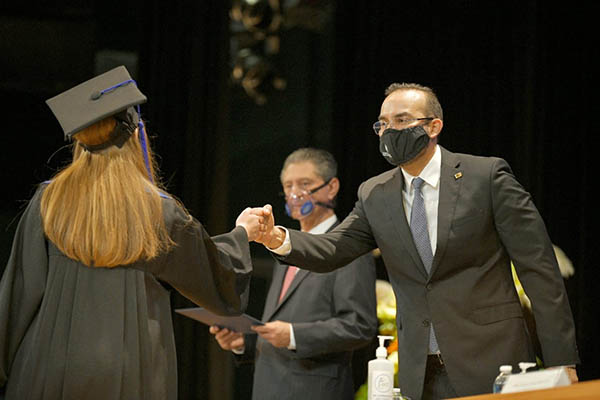 Al encabezar las ceremonias de terminación de estudios de Primavera y Otoño 2020, el Rector manifestó su deseo de que las circunstancias hubieran permitido que las familias, amigos, profesores y profesoras estuvieran acompañándoles, pero que el cuidado de los demás es un compromiso que se asume con gusto e instó a seguir las medidas de prevención recomendadas como un ejercicio de libertad en el que se elige ser solidarios.