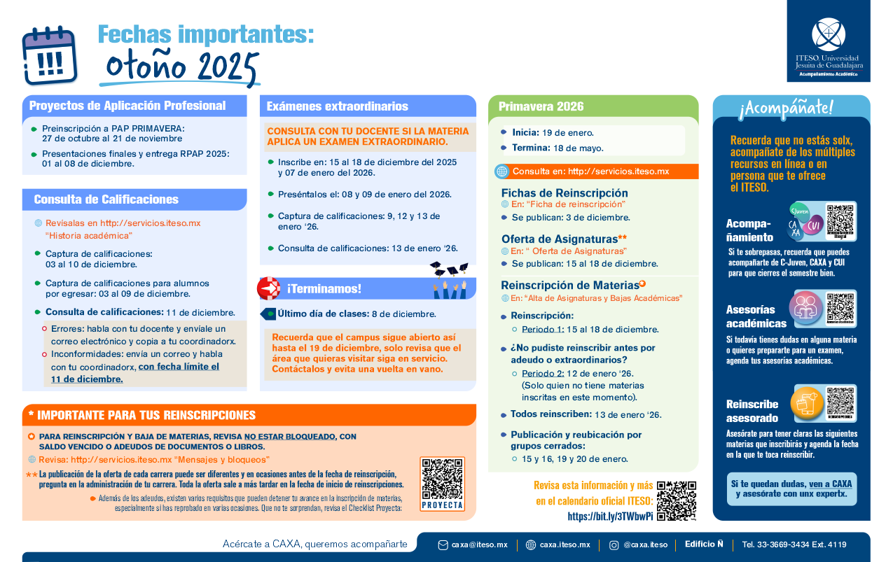 En esta circular vinculada encontrarás las fechas importantes de los procesos para tu cierre de semestre, así como información importante y ligas para dichos procesos.