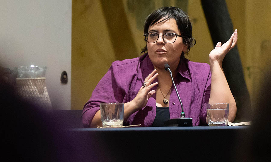 Con estas tres ideas, la primera pregunta que hizo a las personas de la mesa tuvo que ver con las dinámicas de producción. Mejía dijo que era importante considerar no sólo la producción del género, sino pensarlo “desde Jalisco. Estamos en un lugar privilegiado”, dijo, considerando que hay una industria incipiente, con cada vez más recursos, pero sin las complicaciones y ataduras que puede haber en Ciudad de México. Dijo que aquí se puede encontrar producción industrial, independiente y guerrillera, y añadió que mucha de su producción se encuentra entre las dos últimas, ya que hace documentales “no sobre la gente, sino con la gente”.