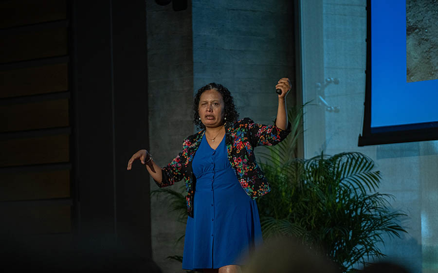 “Sentía mucha frustración porque lo que hacía no solucionaba nada, no daba respuestas. Nancy me dijo: ‘Llorando con ellas tampoco vamos a ayudar a las familias. Debemos tomar el dolor y transformarlo en acción”, relató Juárez y añadió que así fue como surgió Caminos, Centro de Acompañamiento a Migrantes desde donde apoyaban a familias que estaban buscando a sus seres queridos en situación de movilidad humana. Habló de su viaje a Alemania, de cómo se sintió identificada con los migrantes de aquella región del país y compartió cómo a su regreso conoció a Gustavo Esteva en la Universidad de la Tierra, quien influyó en su concepción de la esperanza, entendida como “hacer algo que tenga sentido, a pesar de cómo resulte”. Para cerrar, habló de la creación de los proyectos Futuros Indígenas y Hackeo Cultural, además de hacer un llamado para que se deje de criminalizar a las y los defensores del territorio.