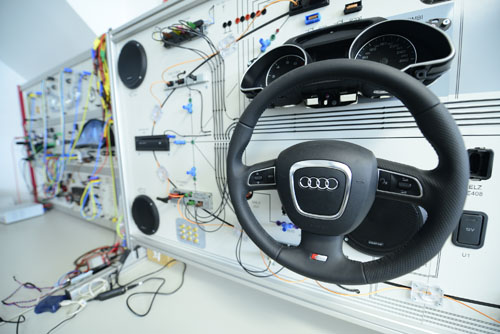 Pruebas de desempeño de unidades electrónicas de control, emulación del comportamiento real de motores de combustión o eléctricos, programación y reprogramación de tarjetas electrónicas relacionadas con distintas funciones de un automóvil (luces, frenos o seguridad), y la exploración de dispositivos para vehículos capaces de moverse solos y compartir información entre sí, son algunos de los proyectos que podrán echarse a andar en estos laboratorios y que guardan una estrecha relación con las industrias aeronáutica, automotriz y robótica.